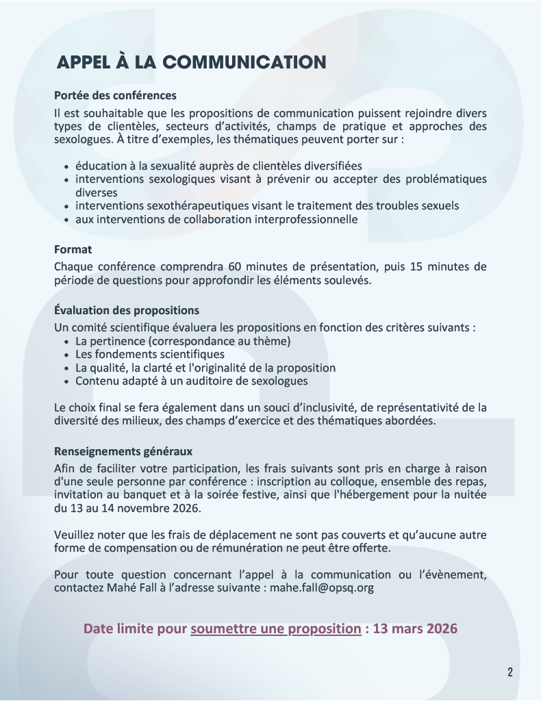 Tous les détails de l’appel, ainsi que le formulaire à compléter, se trouvent sur la page de l’événement : opsq.org/fr/colloque-2026