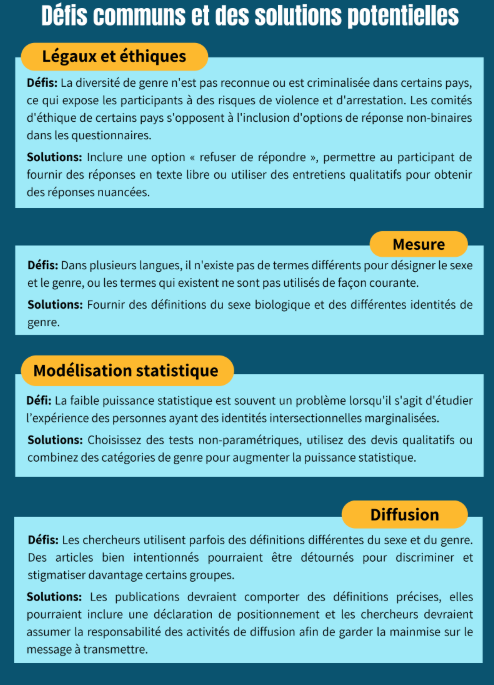 Cette infographie, disponible en 13 langues, présente les principaux défis et enjeux liés à l’intégration du sexe et du genre dans les études internationales sur le stress traumatique. Elle vise à susciter une réflexion critique, à stimuler le dialogue et à encourager le développement d’approches créatives et culturellement sensibles pour mesurer le sexe et le genre dans différents pays.