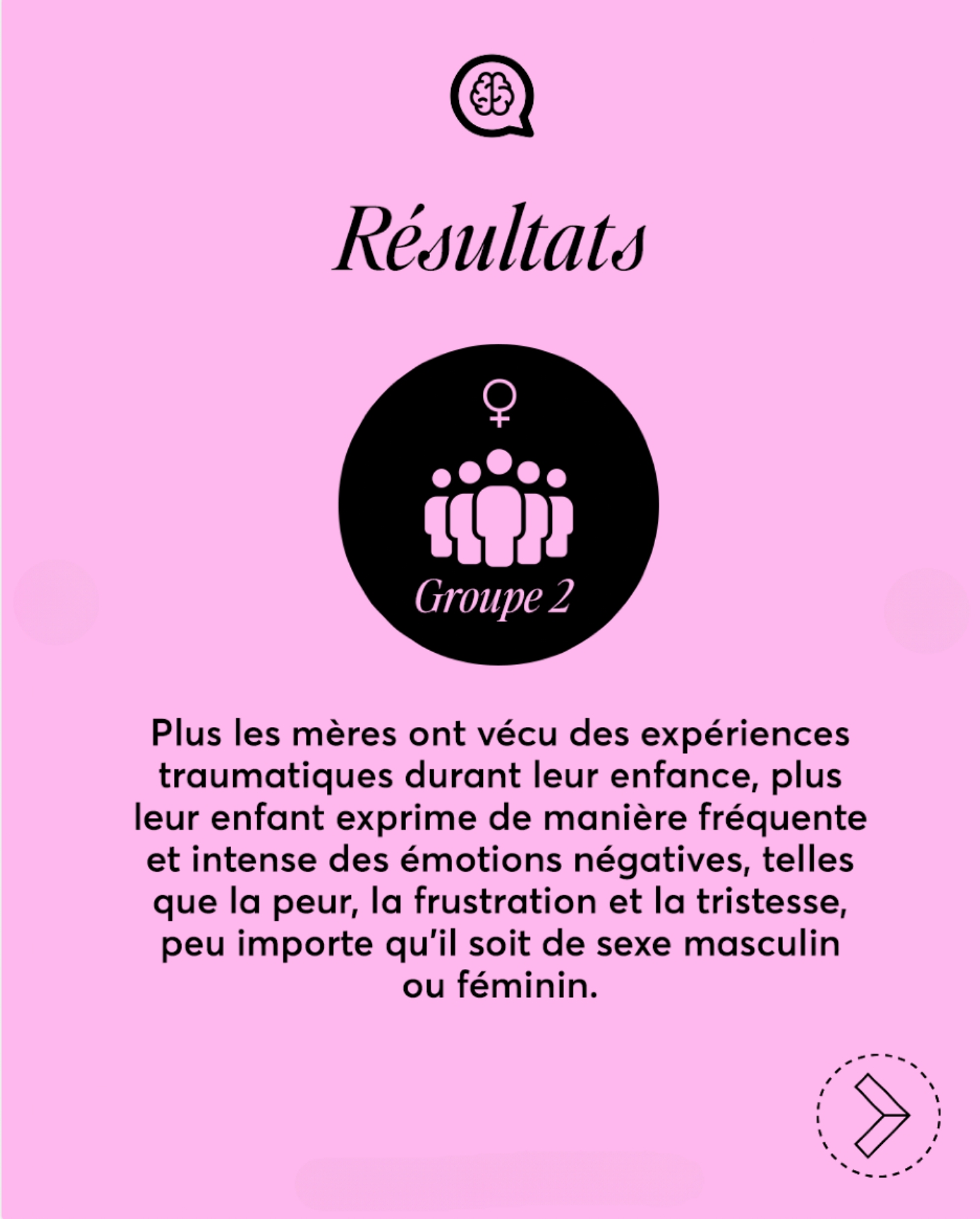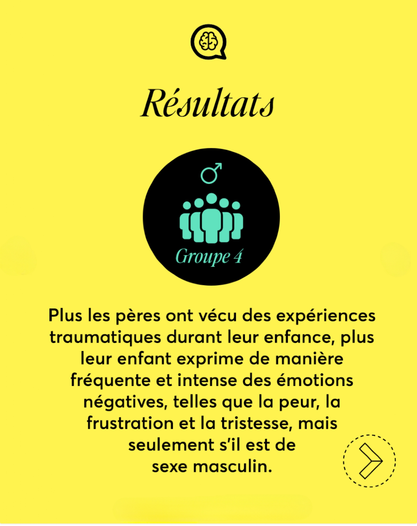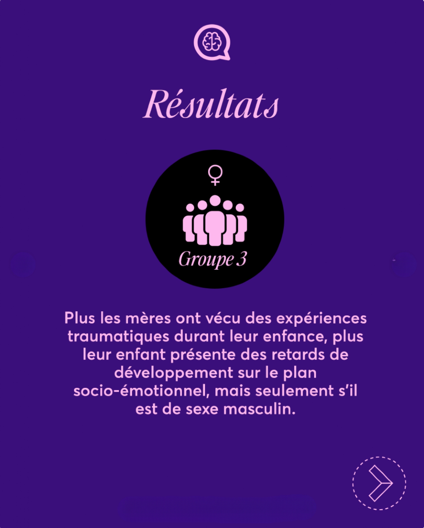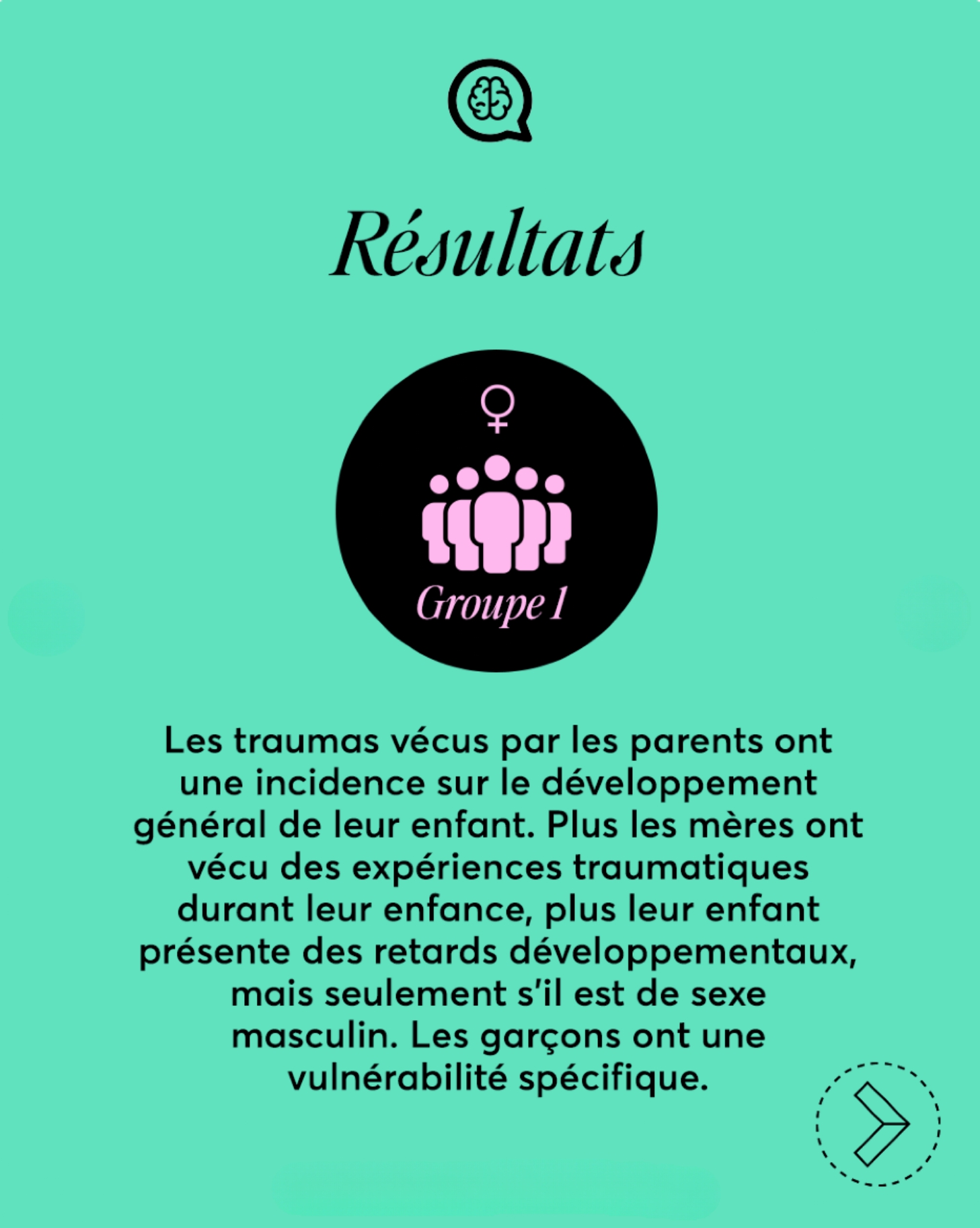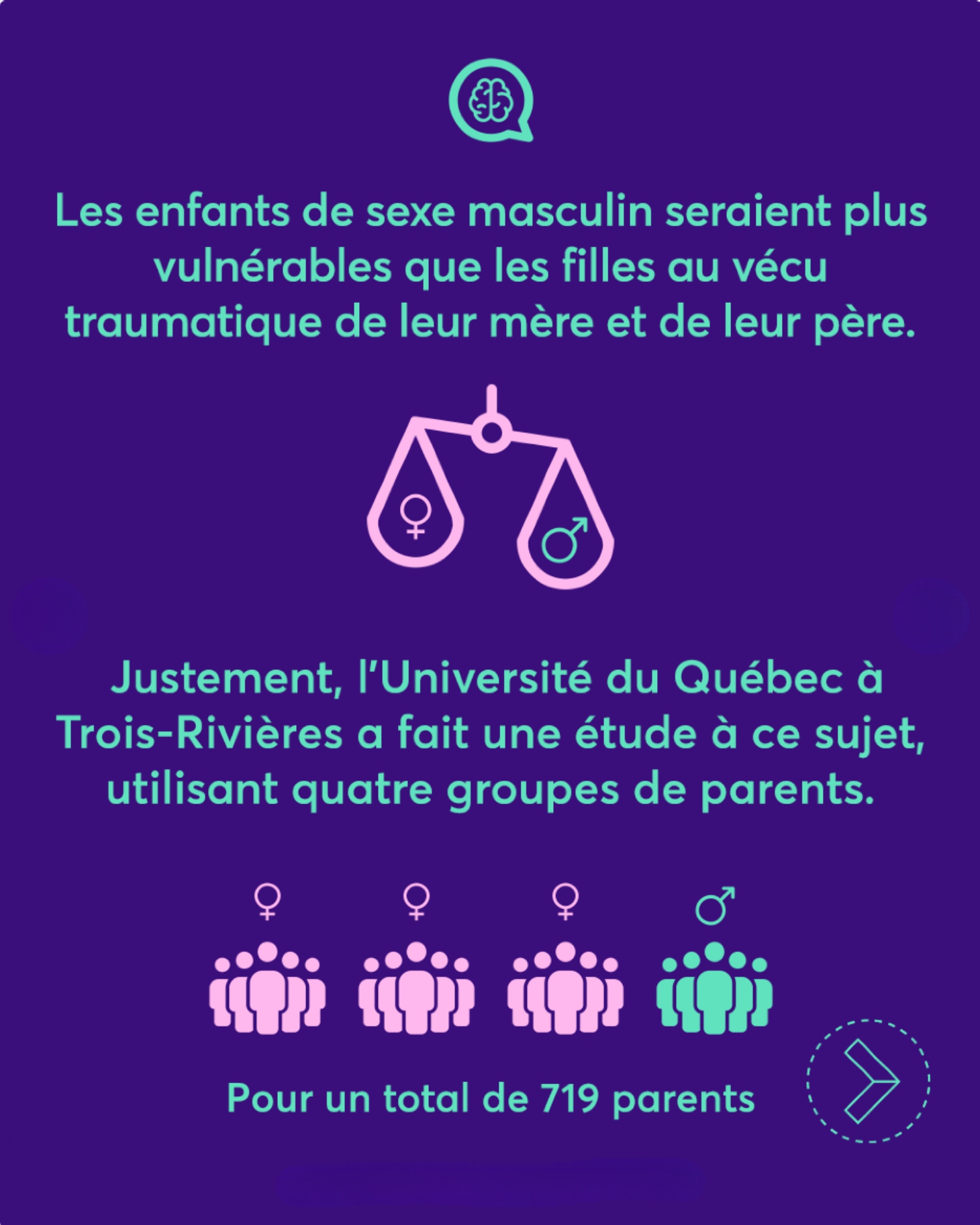 Basé sur l’article de Larouche et al., Converging Evidence of a Specific Vulnerability of Young Boys to Parental Childhood Trauma, ce projet est un parcours visuel préparé pour une