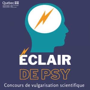 Éclair de psy est de retour pour une cinquième édition! Ce concours de vulgarisation est ouvert aux étudiants qui souhaitent partager les résultats de leur projet de recherche au grand public. Individuellement ou en équipe, faites rayonner vos activités de recherche sous l’un des quatre formats suivants : texte, bande-dessinée, balado ou court vidéo.